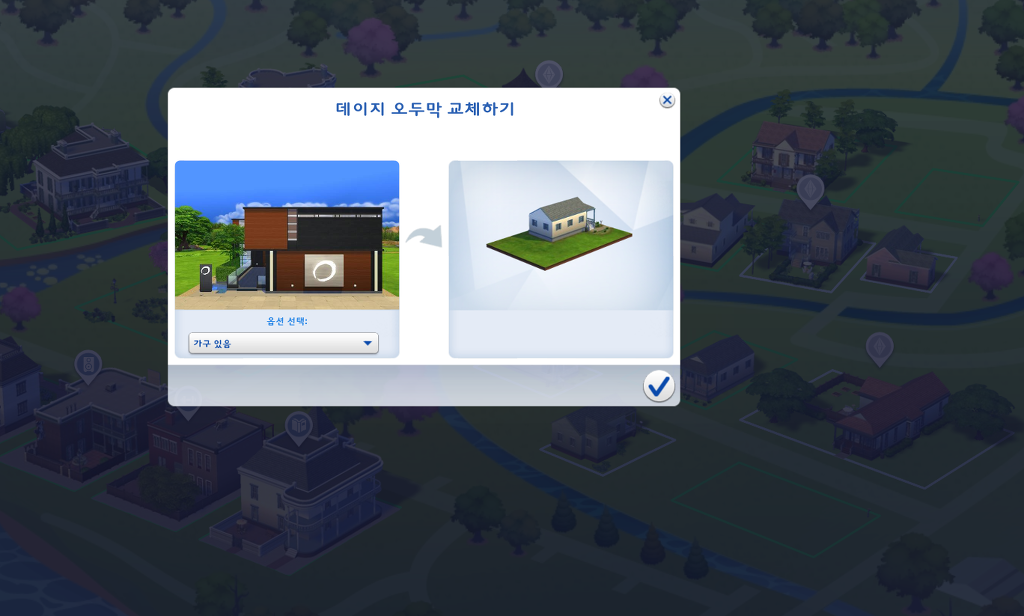 그냥 집을 클릭하면 오두막 교체하기 저런거 뜨고...알았다고 체크하면