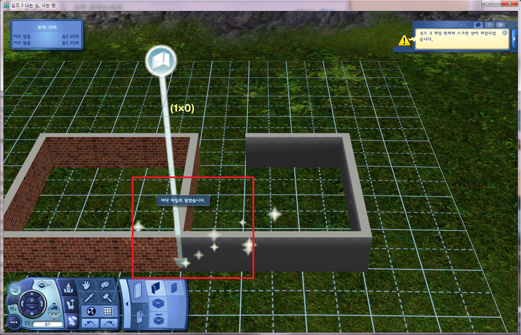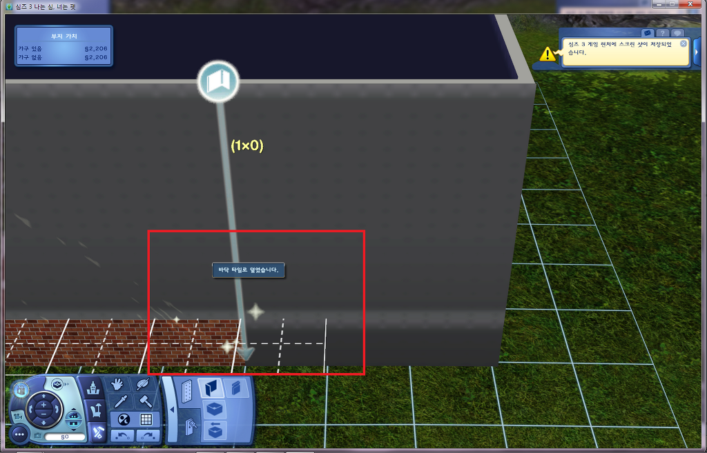 아래 사진에 보시면 "바닥 타일로 덮여있습니다." 라는 말이 뜨면서