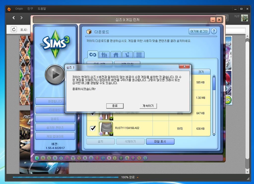 오랜만에 심즈3를 할려고 오리진에서 깔고