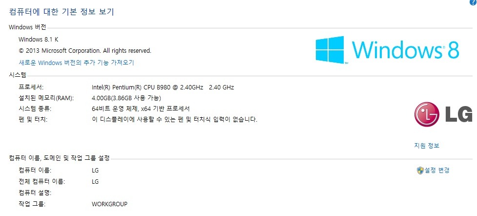 [ - (내)컴퓨터 오른쪽 클릭 - 속성을 들어가시면 프로세서(CPU), 메모리(RAM) 확인이 가능합니다.