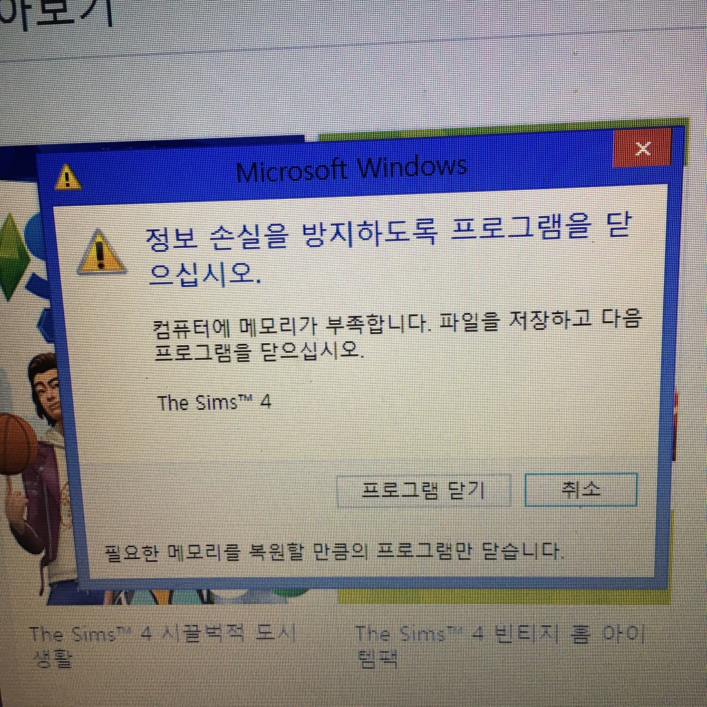 심즈4 메모리부족 강제종료 작성자슈뎅|작성시간17.01.16|조회수760 목록 댓글 0 글자크기 작게가 글자크기 크게가 메모리부족으로 강종되네요ㅜㅜCC템 별로 없는데.... ㅜㅜ 다음검색 현재 게시글 추가 기능 열기 북마크 공유하기 신고 센터로 신고 댓글 댓글 0 댓글쓰기 답글쓰기 댓글 리스트