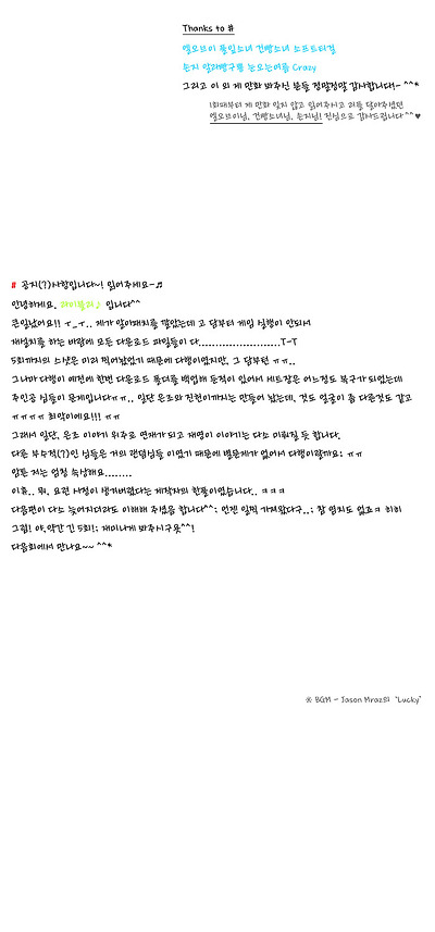 작성자풀잎소녀 작성시간 08.10.15 남자가 너무 매력잇어여 ㅋㅋ 둘이 잘됫으면 좋겟다 노래 제목이 모에요?? (P.S.)넘 재밋어여 담편 기대여~