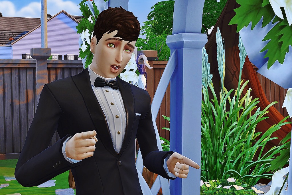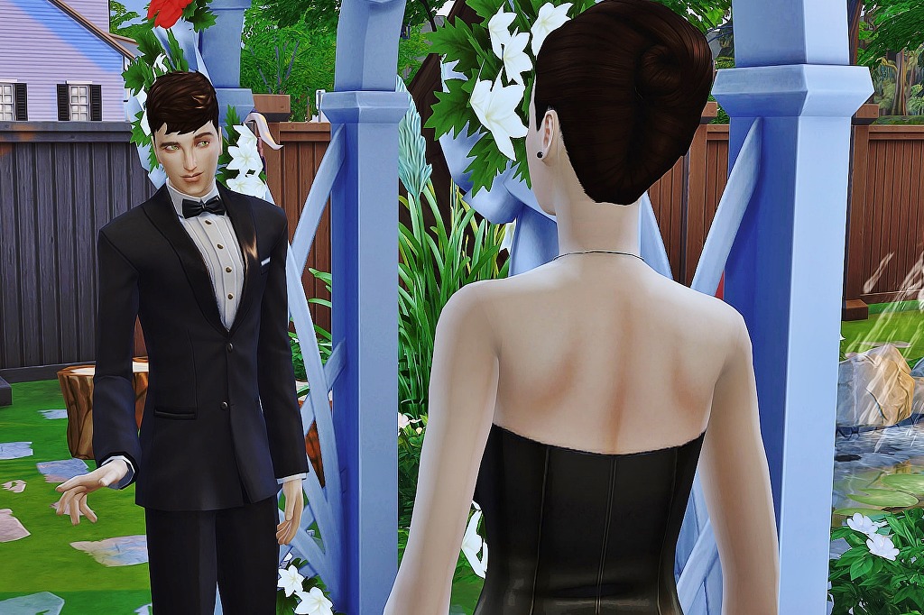 웨딩 아치 아래서 원흉이를 기다리는 신랑 나빠씨