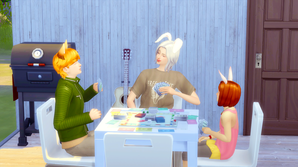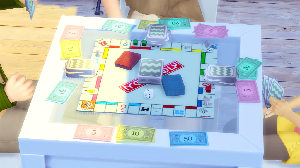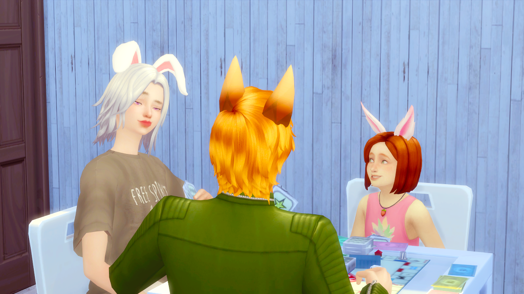 닉이 신나게 수영을 하고 노는 동안 가족들은 모노폴리를 시작했답니다!