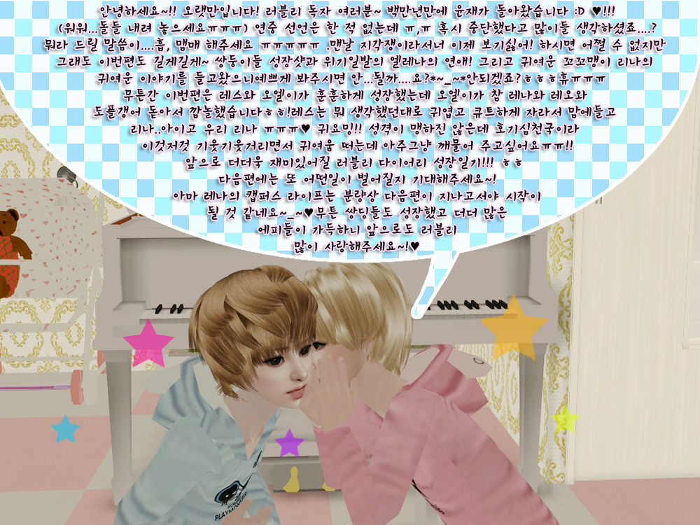 작성자탑쟁이 작성시간 12.10.27 대학에서컴을잘안하다보니까오랜만에집에와서보고있네용ㅋㅋ아가들도 다 성장하고 연애도하고 보기좋아용><