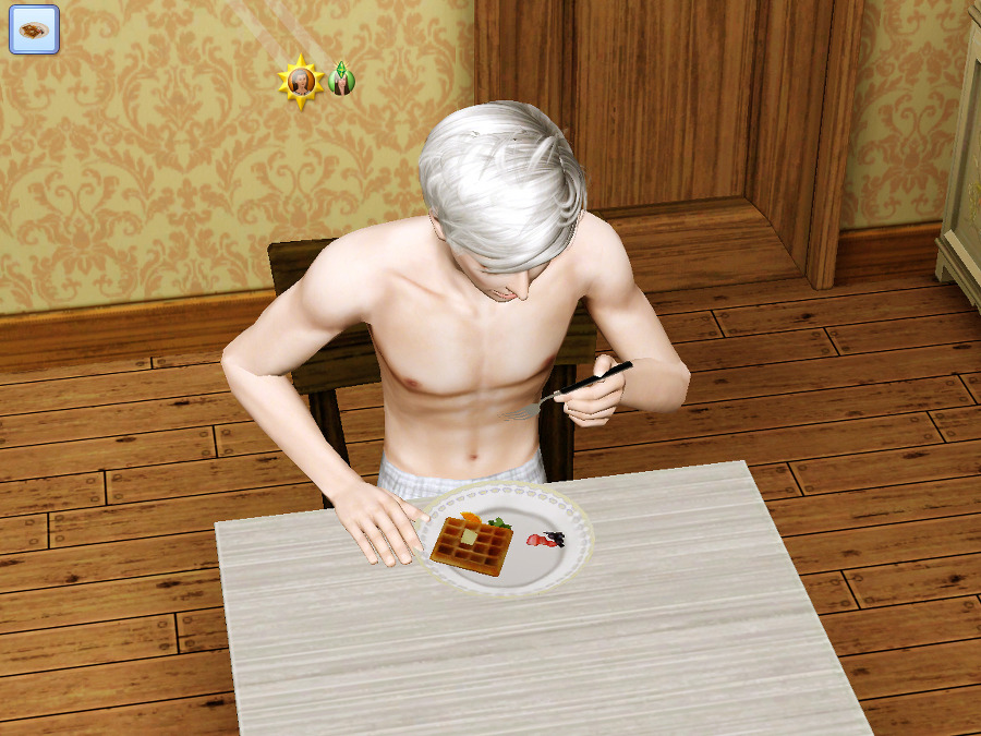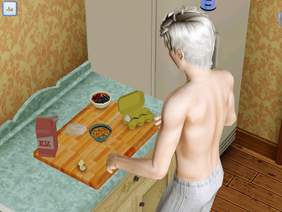 임신한 아내를 위해 잡초가 아침을 준비합니다.