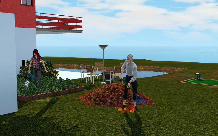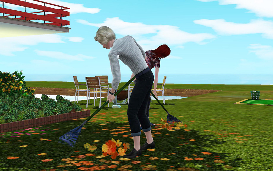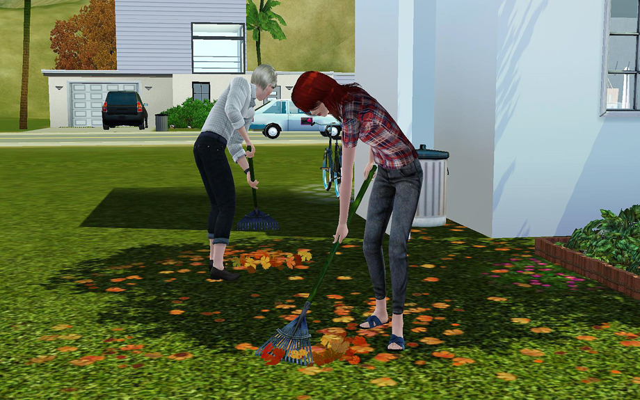 블레스는 브릴린트에게 가을을 경험시켜주기 위한 첫번째 단계로 낙엽 쓸기를 함게했습니다.