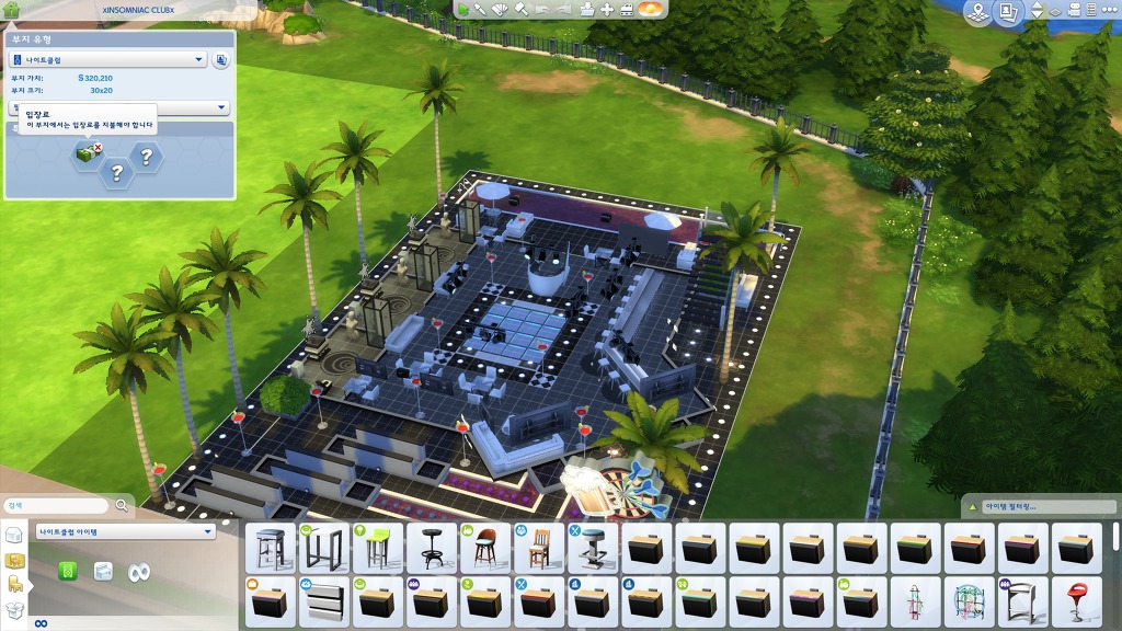 4. 부지를 구매했다면 건축모드로 들어가 부지특성에서 '입장료'특성을 넣어줍니다.