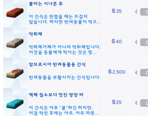 동물에게 먹이면 안될것 같은 바 들과 암브로시아도 팝니다.