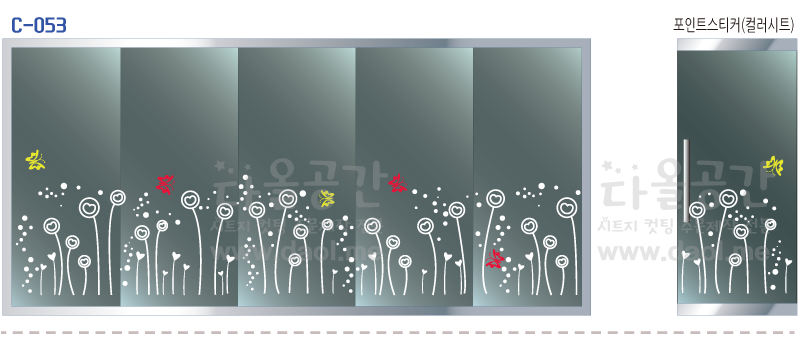 시공방법 : 포인트스티커(컬러시트컷팅)로 제작되면 보조시트지를 이용하여 누구라도 쉽게 시공가능하며,
