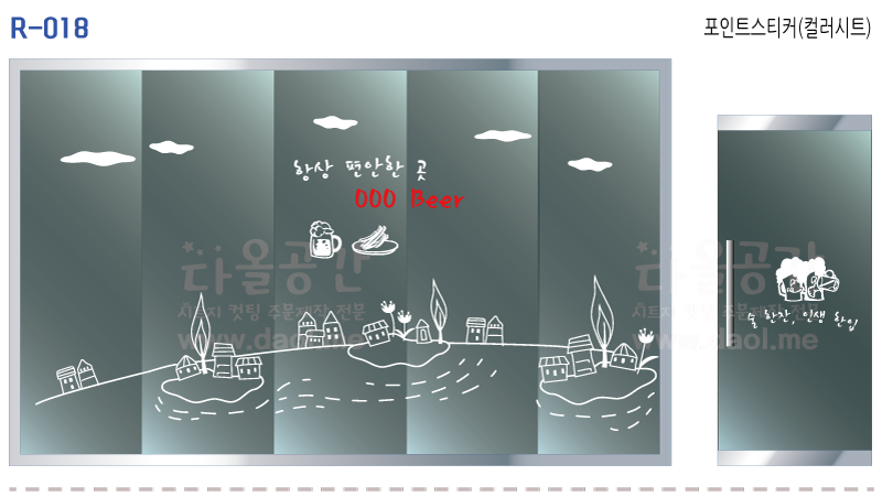 호프집,스몰비어,빵집,베이커리,포인트스티커 제작,안개시트지,베란다 창문시트지 제작용
