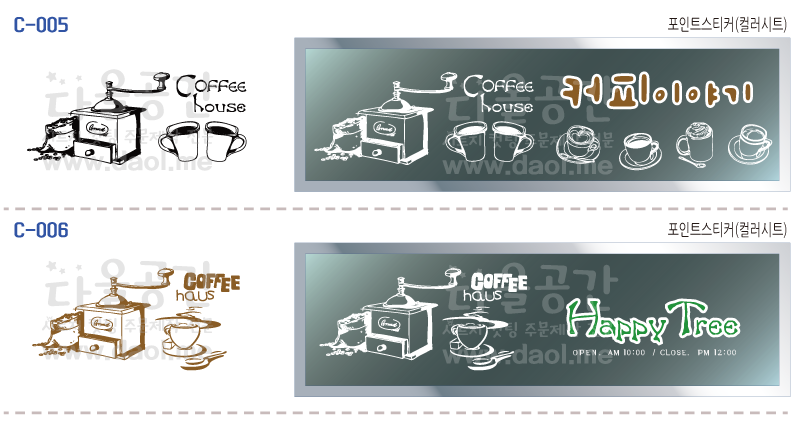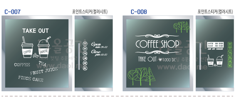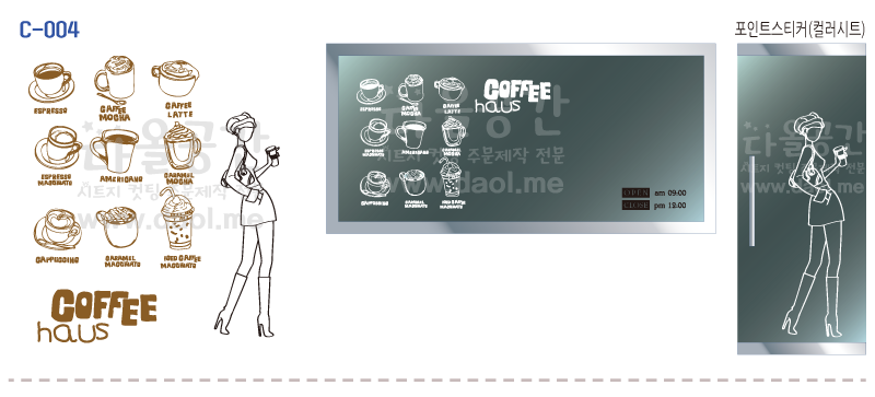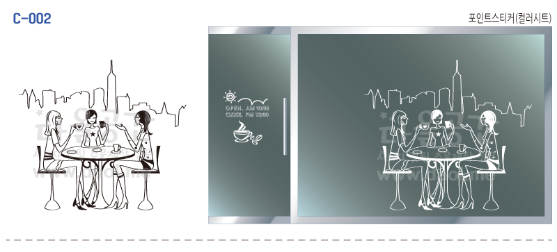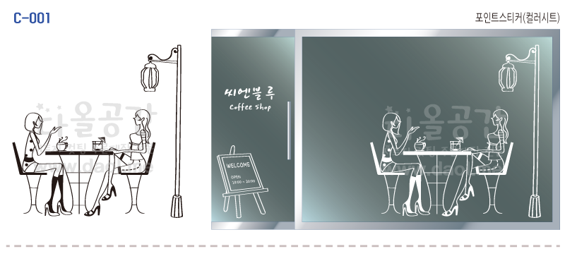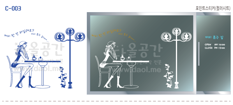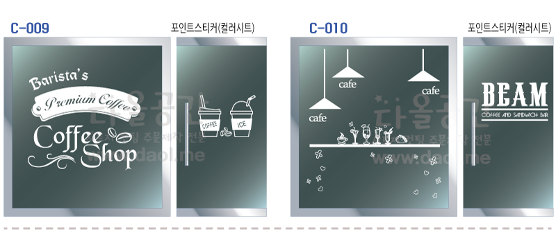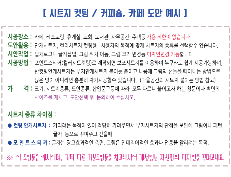 [카페,커피숍 도안] 카페, 레스토랑, 학원, 어린이시설, 도서관, 사무공간, 주택, 상가 등의 유리문 시트지, 창문시트지