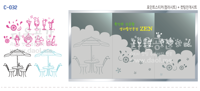 [100% 주문제작 카페 도안] 커피숍.생과일전문점, 컵케이크전문점,생과일쥬스전문점,커피숍 창문시트지, 포인트스티커, 안개시트지 도안, 베란다창문시트지