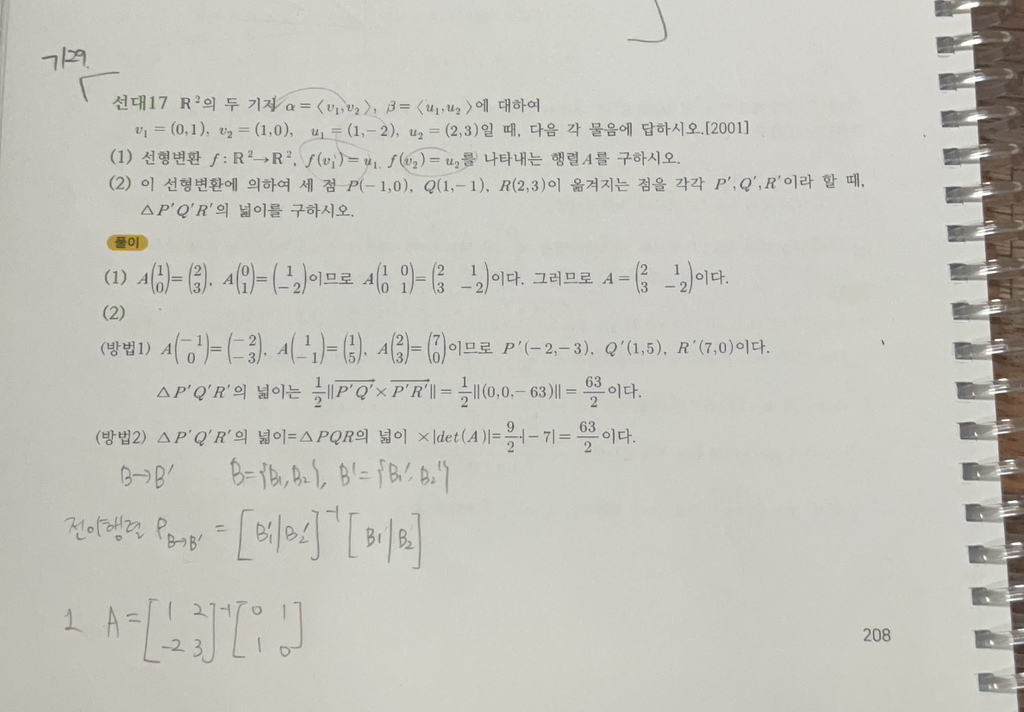 [출발2부]선대 전이행렬 작성자하루스|작성시간24.07.31|조회수86 목록 댓글 0 글자크기 작게가 글자크기 크게가 전이행렬은 새로운 기저를 열벡터로 나타낸 행렬의 역행렬 * 옛 기저를 열벡터로 나타낸 행렬이라고 알고 있는데A를 저렇게 구하면 답이 안 나와요어디서 잘못된 걸까요? 다음검색 현재 게시글 추가 기능 열기 북마크 공유하기 신고 센터로 신고 댓글 댓글 0 댓글쓰기 답글쓰기 댓글 리스트