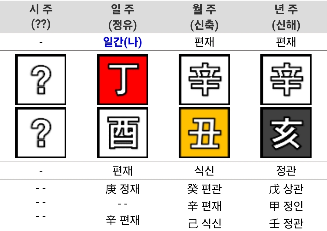 ▶ 이 사주는 관설인가요? 관이 약한게 맞나요 화가 왕한가요? 격이 뭔가요? 같은 단편적인 질문은 답변 드리지 않습니다.
