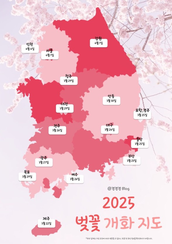 벚꽃~ 작성자땅올콩|작성시간25.03.23|조회수69 목록 댓글 0 글자크기 작게가 글자크기 크게가 가져왔어요봄이니 벚꽃이 필 때가 됐네요~요즘은 이렇게 벚꽃개화지도도 나오네요 ㅎㅎ정말 춥다고 했던게 어제같은데, 와~참고하셔서 모두들 예쁜 벚꽃 놓치지 마세요~~~^^ 다음검색 현재 게시글 추가 기능 열기 북마크 공유하기 신고 센터로 신고 댓글 댓글 0 댓글쓰기 답글쓰기 댓글 리스트