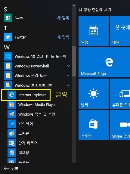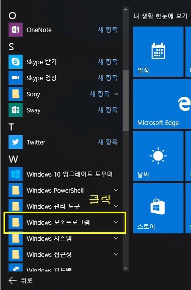 이동 후 아래에 Windows 보조프로그램 항목이 나타나면 클릭 합니다