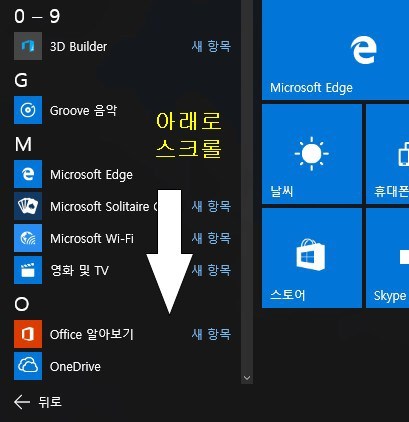 메뉴 버튼 클릭후 아래로 이동을 합니다.