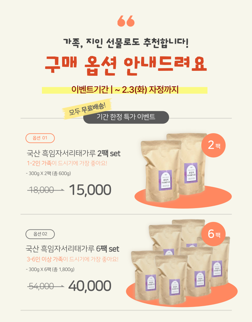 맛있는 국산 흑임자서리태가루 폭풍할인판매 (3일까지) 작성자땅올콩|작성시간26.01.31|조회수25 목록 댓글 0 글자크기 작게가 글자크기 크게가 다음검색 현재 게시글 추가 기능 열기 북마크 공유하기 신고 센터로 신고 댓글 댓글 0 댓글쓰기 답글쓰기 댓글 리스트