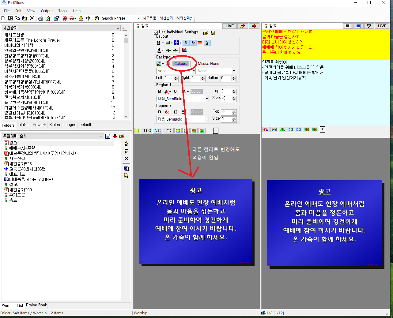 그거 말한거 아닌데요 ㅠㅠ 주일예배-순서 바로 옆에 있는 아이콘 보이시죠? 그거 클릭하셔서 작업하는걸 얘기한겁니다;;그러면 전체 변화가 온다는거에요 -