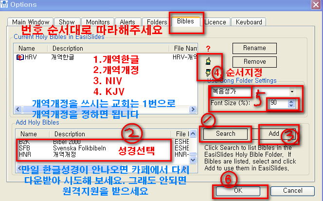 7. 옵션의 Bible 탭에서 ... 이하는 그림대로 하시면 됩니다