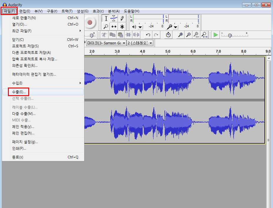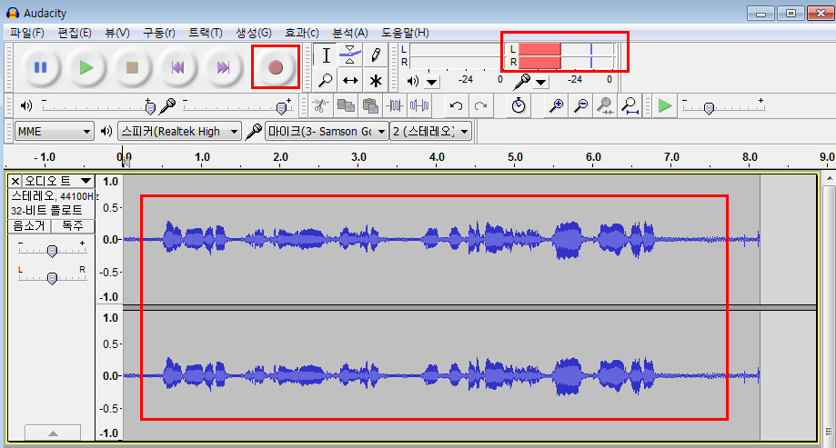 녹음버튼을 눌러 보세요. 그러면 아래처럼 녹음이 됩니다.