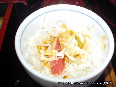 진한 가쓰오부시 향이 국물맛을 살려 주고 있다 밑반찬으로 양배추샐러드
