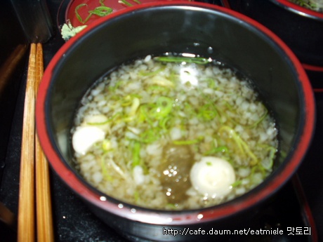 메밀소스(쯔유)를 두 그릇이나 가져다 줍니다