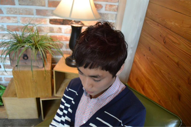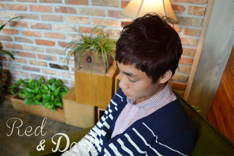 부담스럽지 않는 톤다운된 다크레드컬러는 염색을 처음 시도하는 남자분들에게 추천해릴게요.