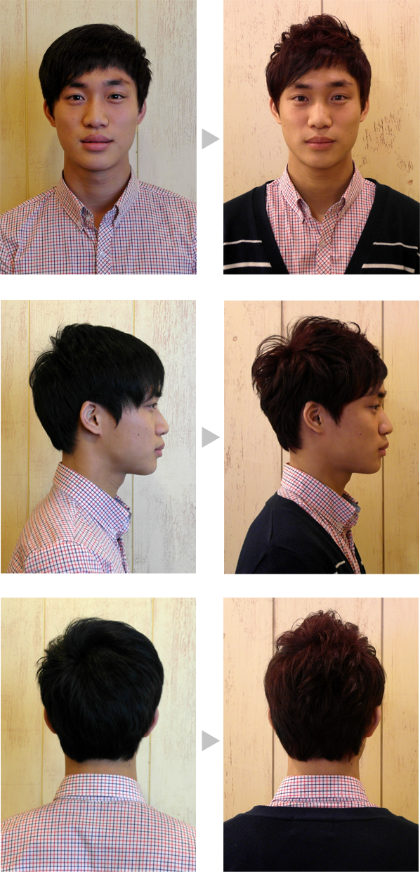 오늘은 서문2호점 현지디자이너의 헤어모델 2탄! 남자 다크레드염색입니다.