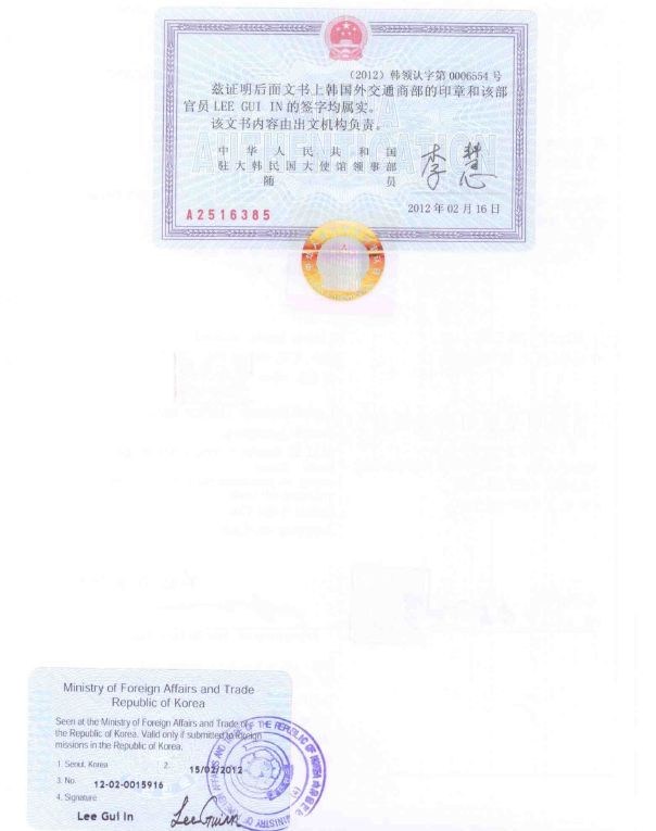 임명장 번역공증, 임명장,위임장,수권서 중국어번역공증 대사관인증 대행