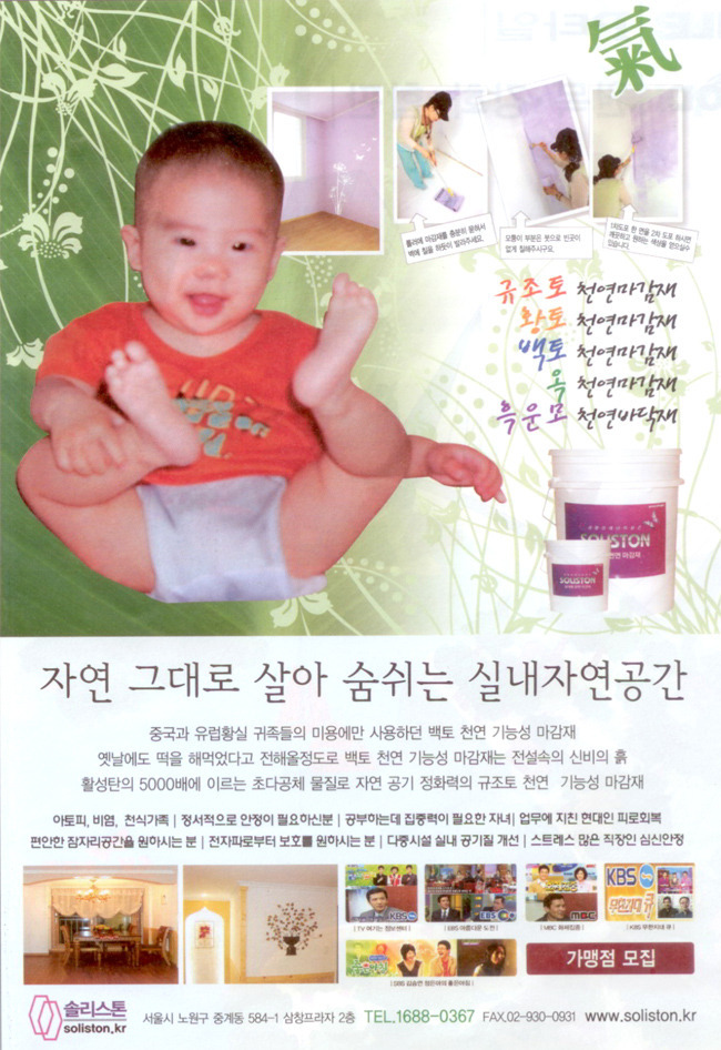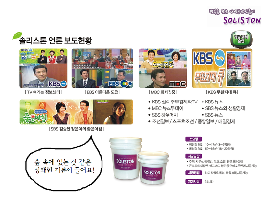 | 솔리스톤 상품 http://www.codibath.com/ ☎ 1688-0367 옥션 솔리스톤 백토 바로구매 go▶ 천연마감재소개 : 백토,규조토,금운모,흑운모,일라이트,옥,황토 창업안내 / 무점포소자본창업 / 백토,규조토 / 친환경욕실코팅제 http://www.eco37.com/ |
