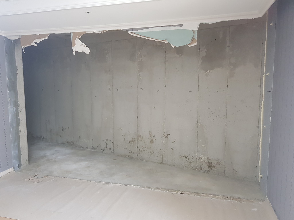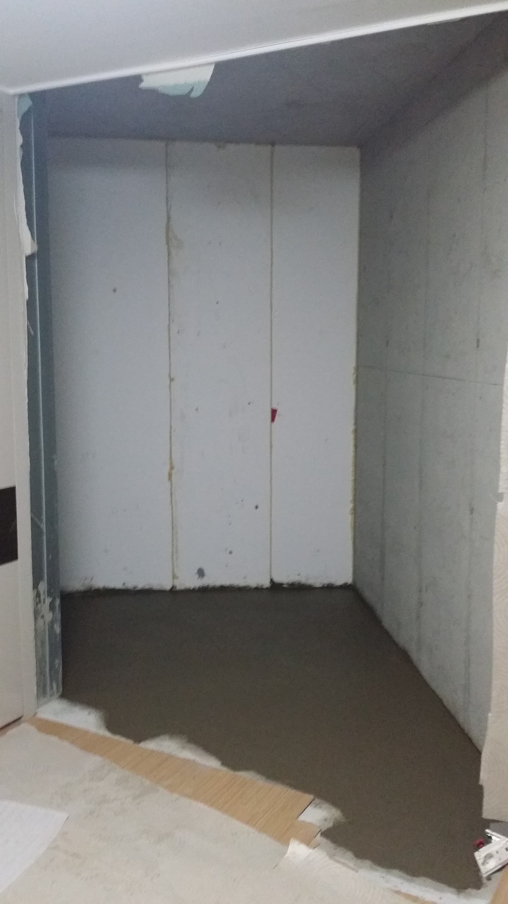 중흥S클래스 안방 숨은 공간 확장 후 보일러 시공을 하고, 미장을 한 상태 입니다.
