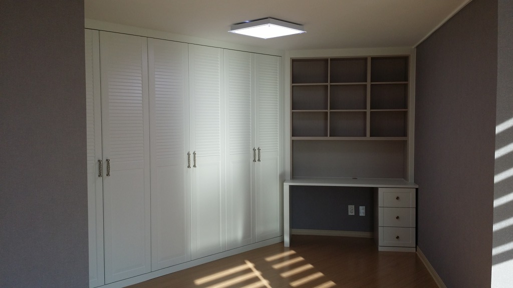 이 같은 경우는 작은방에 있던 숨은 공간을 활용하여 붙박이장을 설치한 모습 입니다.