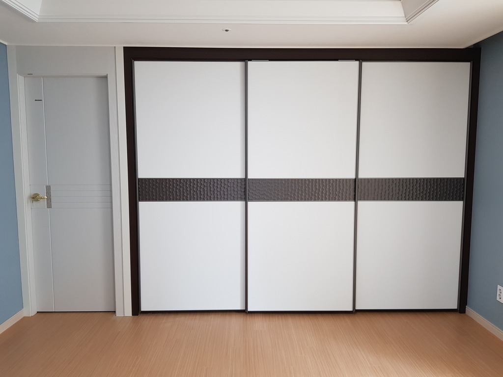 아래 사진은 중흥 안방 확장 후 붙박이장 설치 후 나머지 공간은 ABS 도어를 설치하여 출입이 용이하도록 하였습니다.
