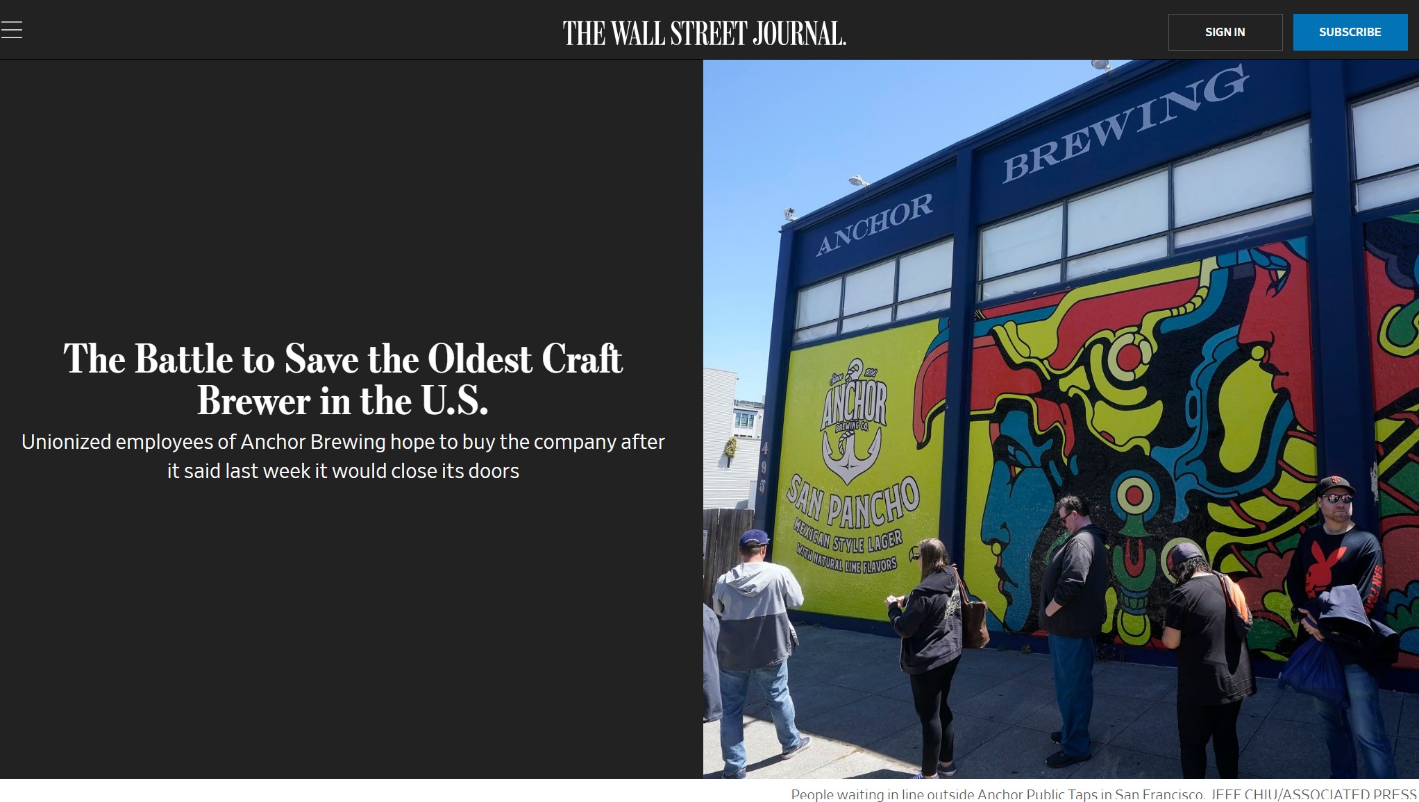 앵커 맥주의 폐업을 발표했습니다.