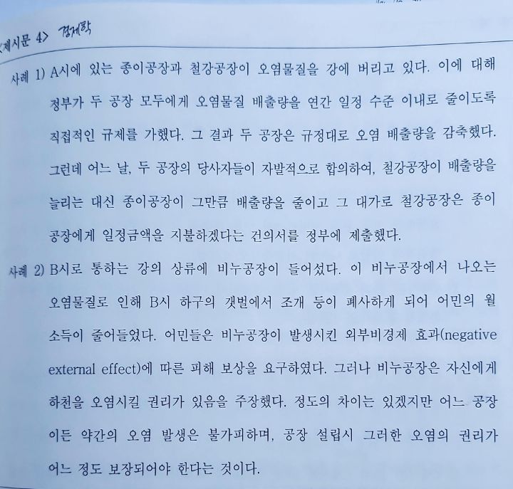 작성자economind 작성시간 23.03.15 네 제시문 4만 보이는데 코우즈 정리가 기술되어 있네요.