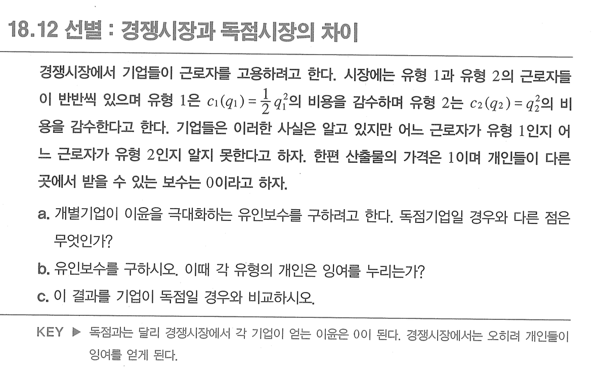 18.9와 18.12 문제가 둘다 경쟁 "노동"시장에서 선별문제인 것 같은데