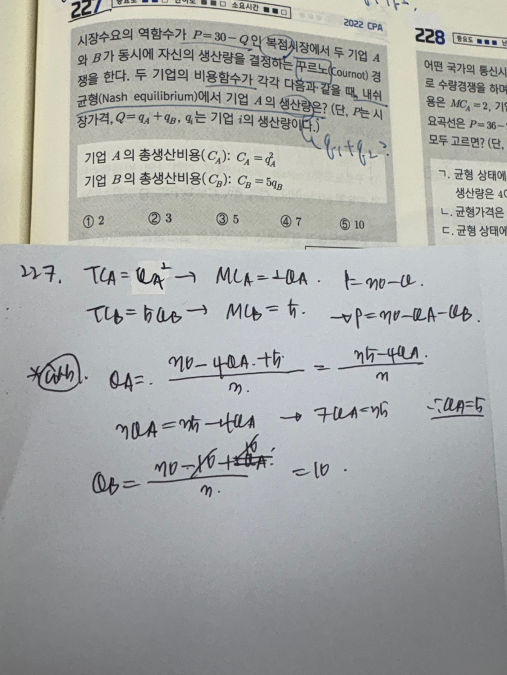 그런데 227번 문제 해설에서 이 문제는 공식을 적용할 수 있는 형태가 아니라고 제시되어 있어서