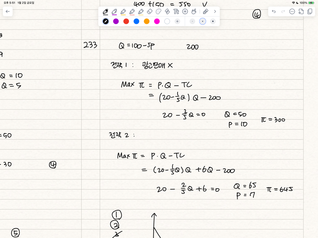 미시 경제학 객관식 233번 (2017 cpa) 작성자유유유윤|작성시간26.01.02|조회수75 목록 댓글 1 글자크기 작게가 글자크기 크게가 Max pi를 이용해서 이렇게 풀었는데 전략 2를 이렇게 풀어도 될까요?최대한 많이 수요하게 만드는 전략이 안떠올라서 이렇게 풀었습니다 다음검색 현재 게시글 추가 기능 열기 북마크 공유하기 신고 센터로 신고 댓글 댓글 1 댓글쓰기 답글쓰기 댓글 리스트 작성자economind | 작성시간 26.01.04 전략 2에서 이윤극대화 수식을 풀 필요는 없습니다. 단순하게 생각하셔야죠. 수요곡선을 그려보시고, 가격을 얼마로 정해야 수요가 최대값이 되는지 생각해보시면 답이 나옵니다.이윤극대화 수식은 이러한 조건이 없는 기본적인 기업의 행동원리를 적용할 때 쓰는 거죠. 댓글 전체보기