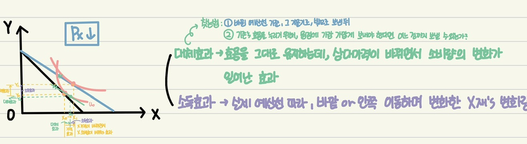 소득효과를 구할때는 대체효과 구한뒤, 십자가를 그어서 구하라고 하셨던것 같은데