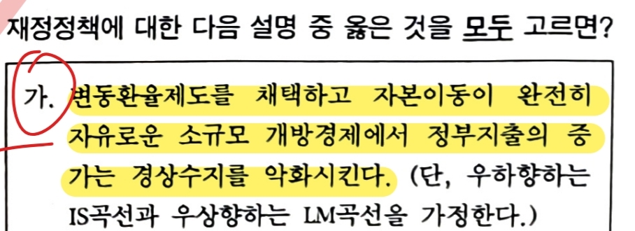 거시 2011년 cpa 기출 27번 작성자늄냠|작성시간26.01.31|조회수56 목록 댓글 1 글자크기 작게가 글자크기 크게가 강사님 안녕하세요. 가. 선지가 옳은 이유가 아래 논리 맞을까요?정부지출 증가로 정부저축 감소, 통화량 감소, 환율 하락, 수출불리 수입유리, 경상수지 악화 다음검색 현재 게시글 추가 기능 열기 북마크 공유하기 신고 센터로 신고 댓글 댓글 1 댓글쓰기 답글쓰기 댓글 리스트 작성자economind | 작성시간 26.02.03 수평인 BP를 가정합니다.적으신 것은 논리가 아니라 팩트나열이고요.정부저축 증가 - IS우측이동 - 국내 이자율상승 - 자본 유입 = 외환의 초과공급 - 환율하락 - 경상수지 악화이렇습니다. 댓글 전체보기