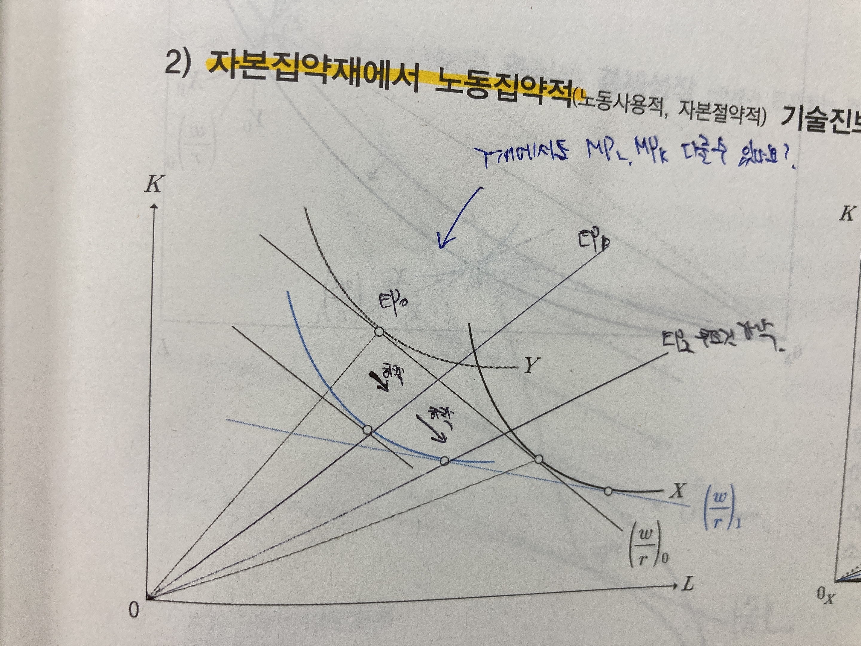 그렇다면 그림에서처럼 자본집약재에서 노동집약적 기술진보 시, 자본집약재에서는 생상함수가 변하므로 요소집약도가 하락하더라도 mpk mpl을 다룰 수 없나요?.. 노동집약재는 생산함수가 그대로 여서 mpk mpl을 다룰수 있는건가요??