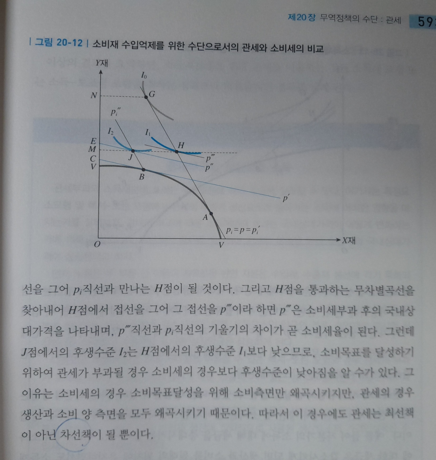 관세와 일반균형분석을 공부하며 지엽적인 의문이 생겨 질문 드립니다. 김인준 저 국제경제론 592 페이지 부분입니다!