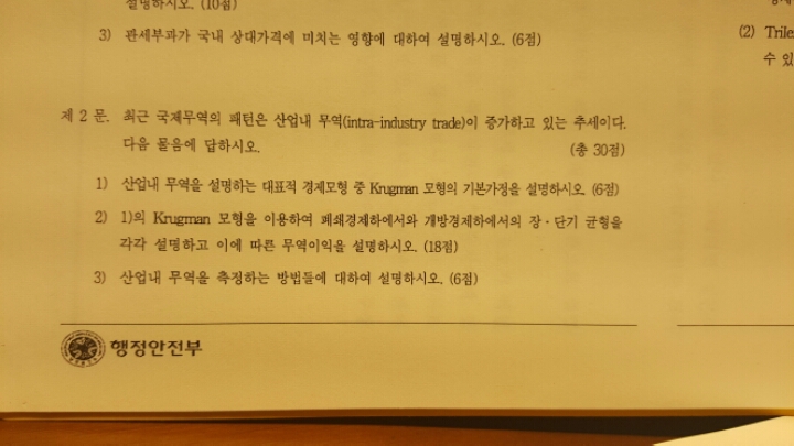 크루그먼모형 이용해서 개방경제에서의 장단기 균형을 설명하라고 했는데