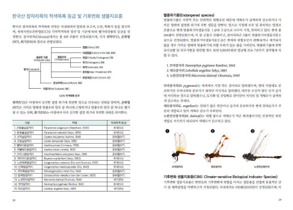 한국산 잠자리목의 적색목록 등급 및 기후변화 생물지표종 28