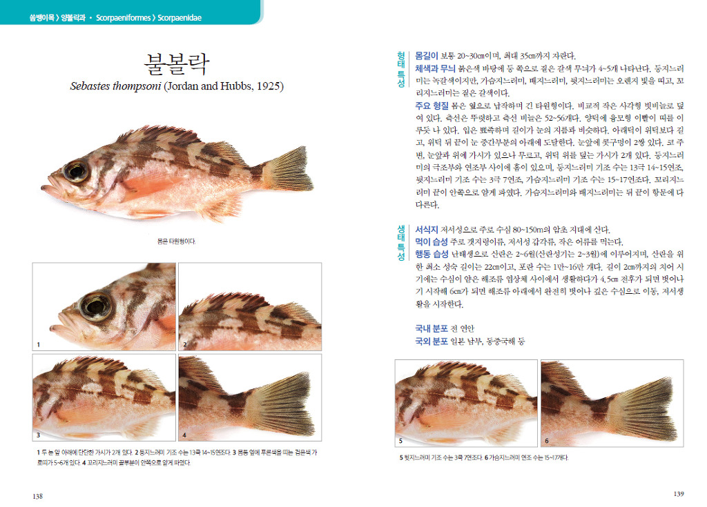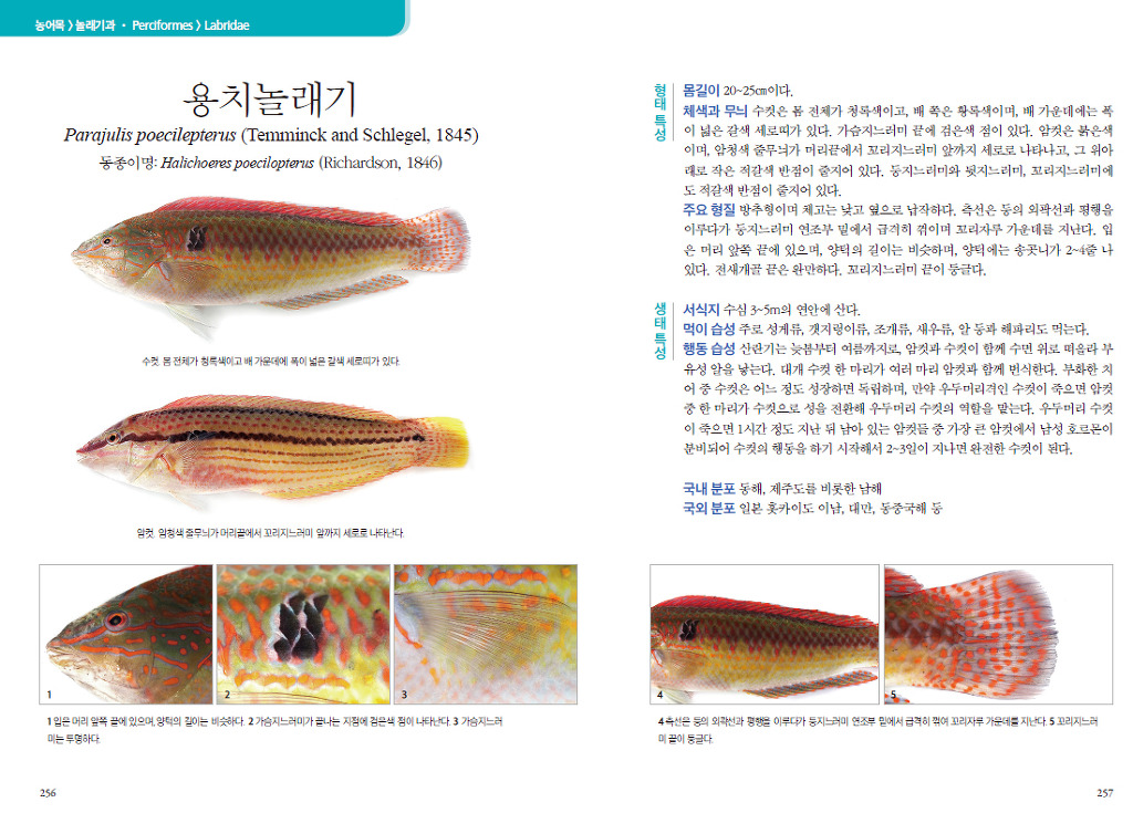 채집 즉시 물고기를 촬영해 본래의 몸 빛깔을 담았다. 죽으면 탈색되어 종 구별에 혼동을 일으키는 문제를 해결했다. 또한 종마다 전체 모습, 머리, 지느러미, 꼬리 등 부위별 특징을 살펴볼 수 있도록 확대 사진을 수록해 현장에서 종을 쉽게 구별할 수 있다.