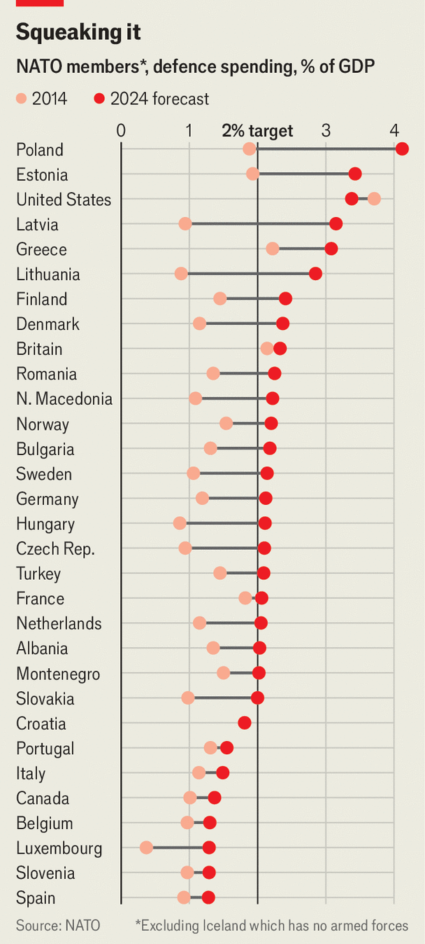 The Economist has argued that the best way of protecting Ukraine would be for it to join NATO. Membership would help prevent it from becoming unstable, embittered and vulnerable to co-option by Mr Putin in pursuit of his ultimate aim, which is to destabilise and dominate Europe. It would also bring Europe’s largest, most innovative and battle-hardened army and defence industry into the alliance—something that Mr Trump might welcome, because NATO would then need fewer American troops.