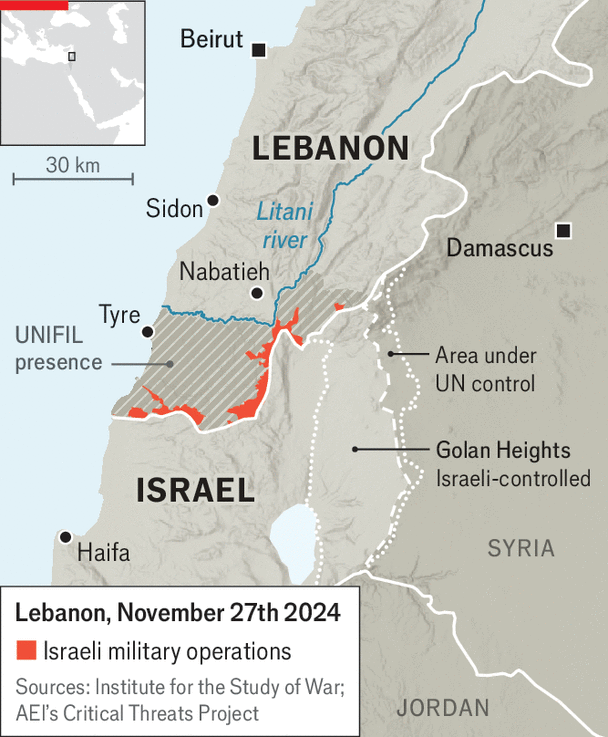 AT LAST, A flicker of hope. The ceasefire between Israel and Hizbullah, which took effect on November 27th, brings respite to millions of Lebanese and Israelis. It ends a war of nearly 14 months that Hizbullah, a Shia militia, no doubt regrets having started. It also gives Israel much of what it sought, including a right to strike if Hizbullah re-arms. America, meanwhile, has a responsibility for monitoring compliance.