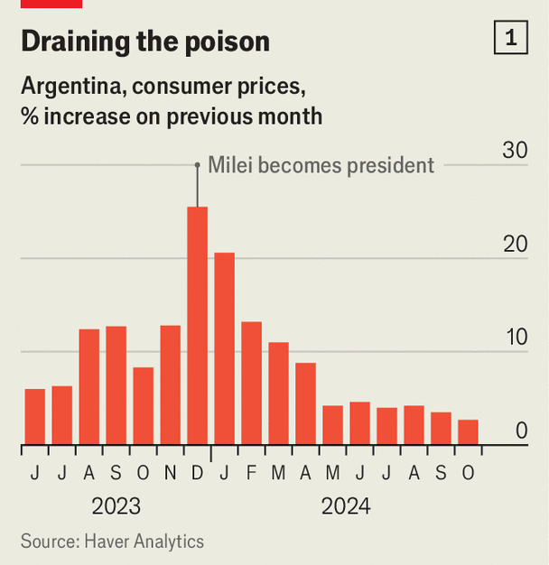 Make no mistake, the Milei experiment could still go badly wrong. Austerity has caused an increase in the poverty rate, which jumped to 53% in the first half of 2024 from 40% a year earlier. Mr Milei could struggle to govern if resistance builds and the Peronist opposition is better organised. Investor confidence will be tested if he finally removes capital controls and shifts an overvalued peso to a flexible exchange-rate regime: a currency slump could test nerves and push inflation back up. Mr Milei is an eccentric who could become distracted by culture wars over gender and climate change, and thus neglect his core mission of restoring Argentina’s economy to growth.